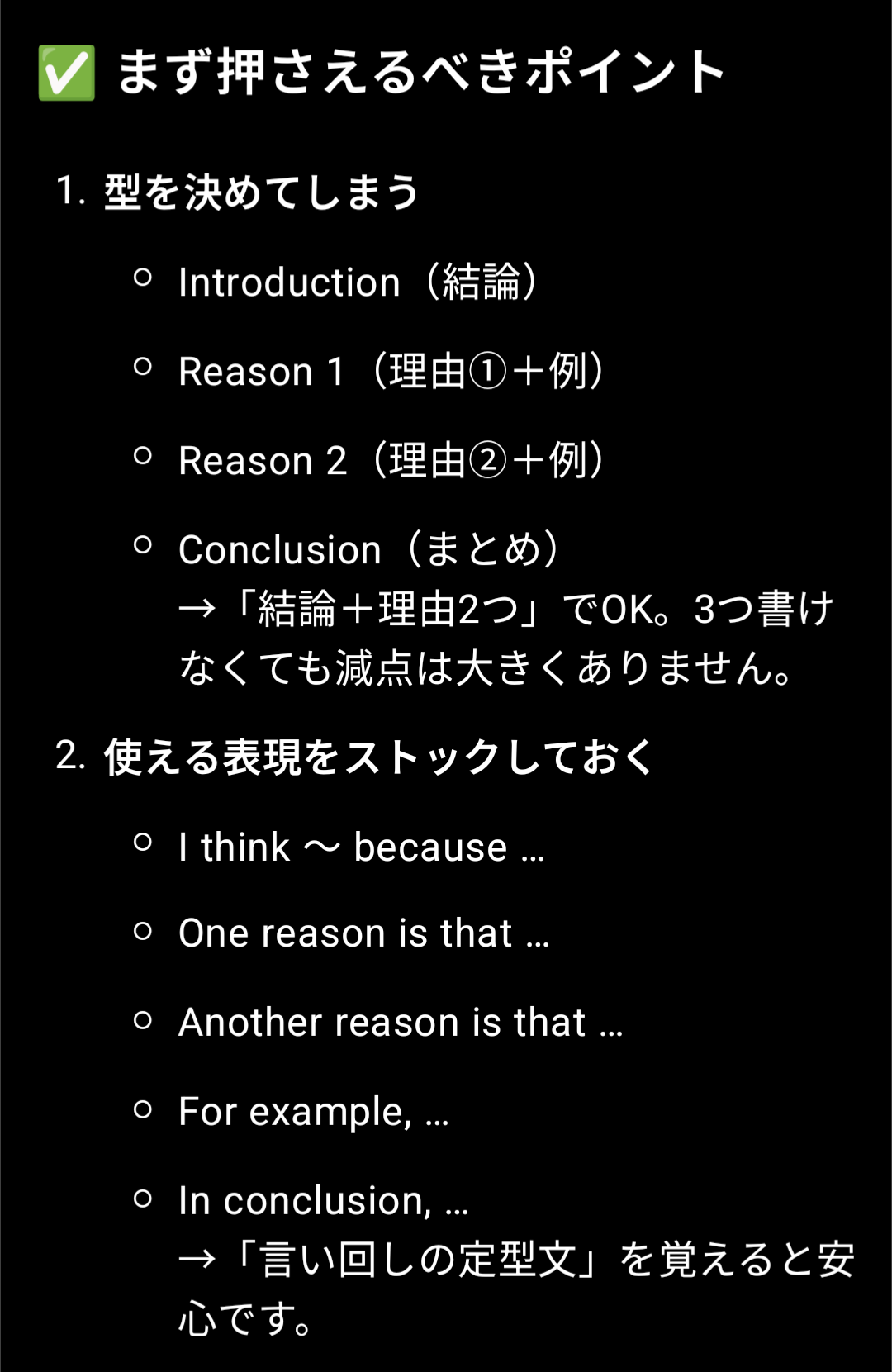 実は、英検2級を受けたときにも活用していたのですが、今回も頼りにしたのは AI(ChatGPT)