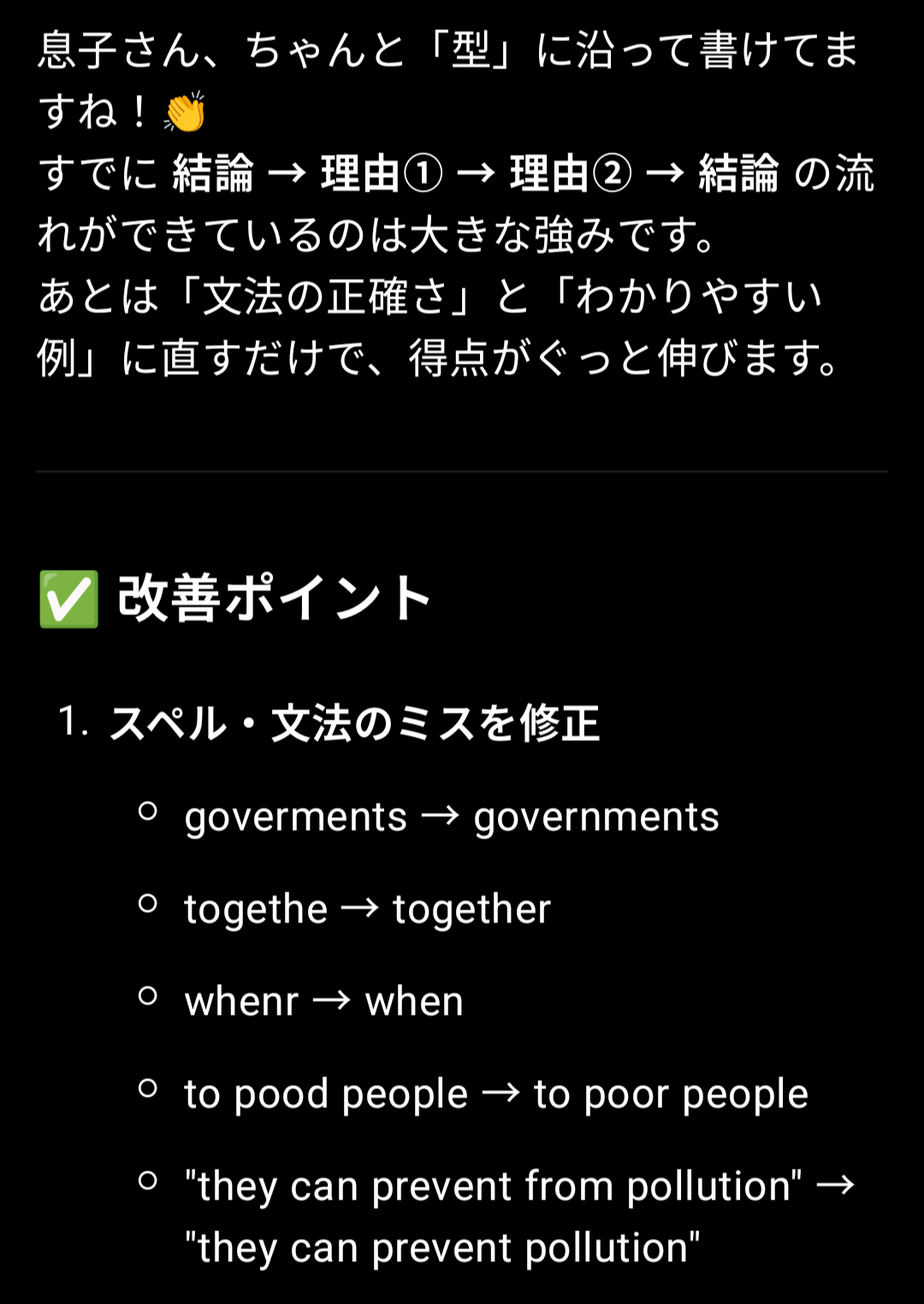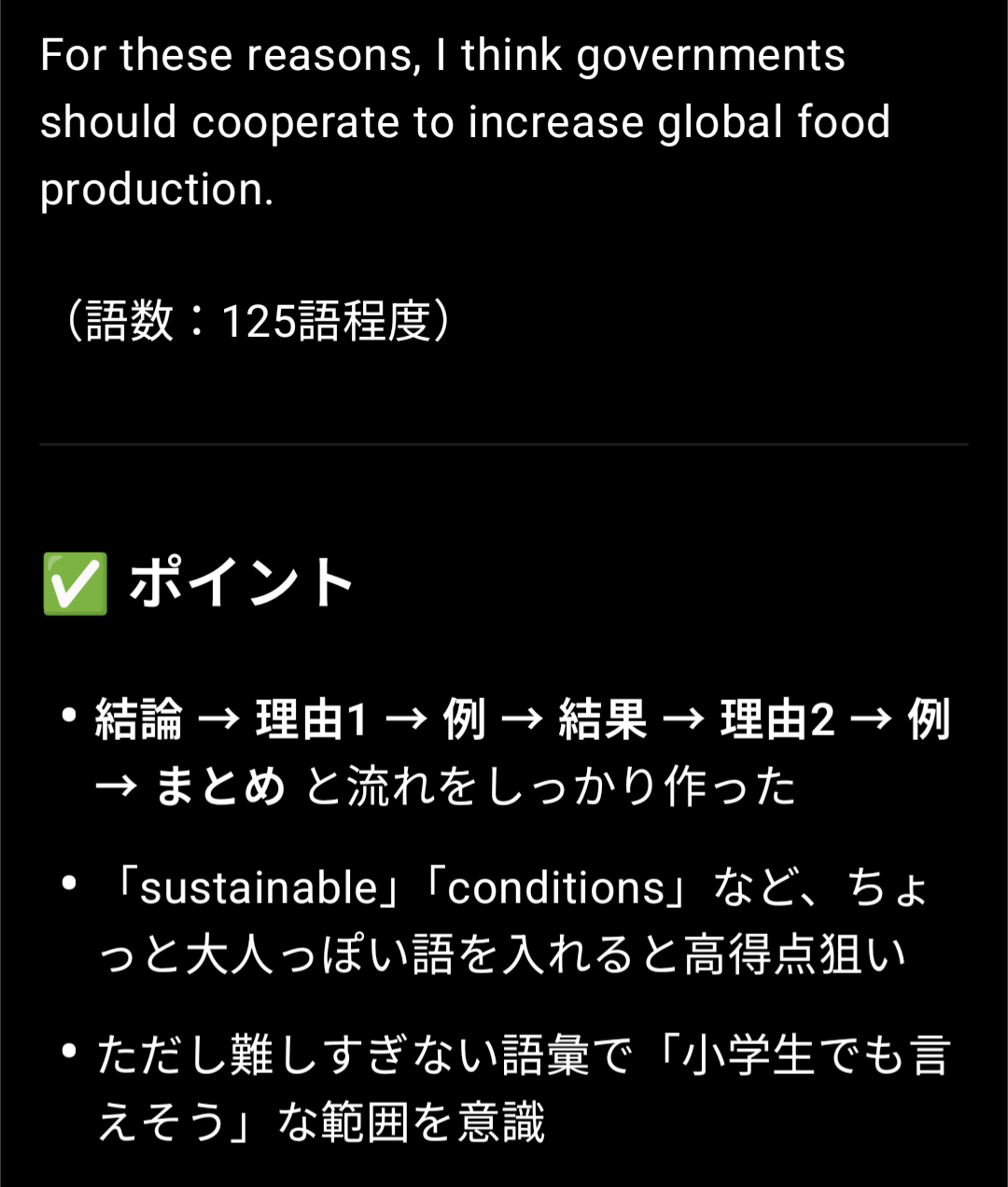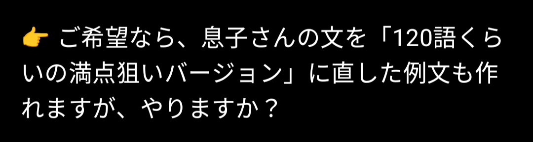 早速添削をお願いしてみると、即座に返ってきたのは 完成度の高い模範解答。