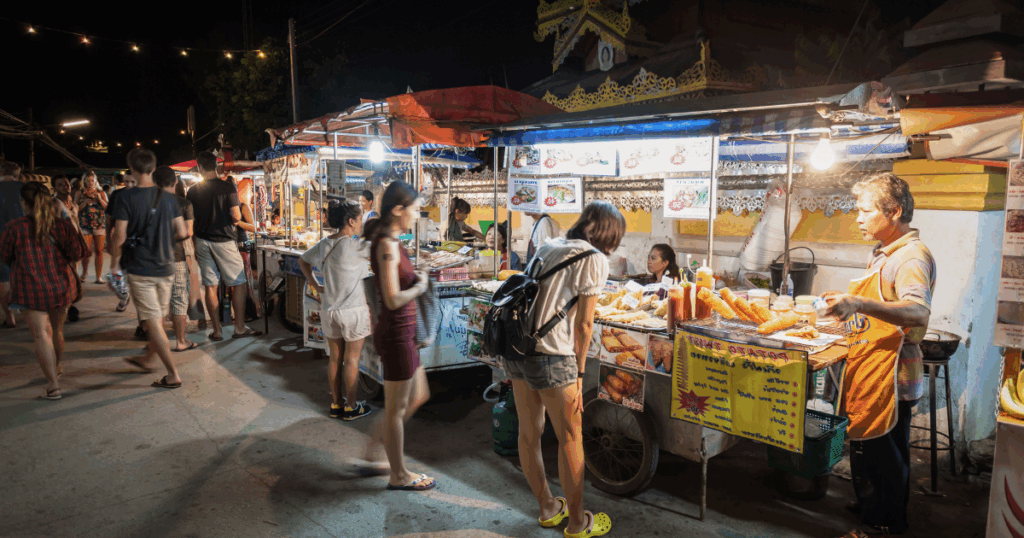 曜日ごとに場所が変わるナイトマーケットでは、地元の食文化を体験!